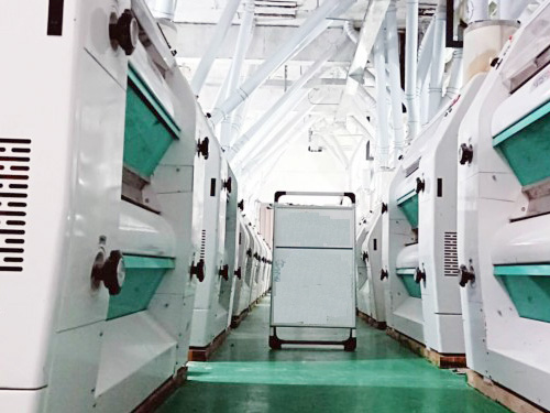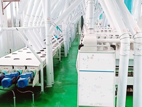 在倉(cāng)儲(chǔ)、干法清理,制粉及面粉配粉的各道工序完全自動(dòng)化,日加工小麥200噸的面粉加工生產(chǎn)線(xiàn)。